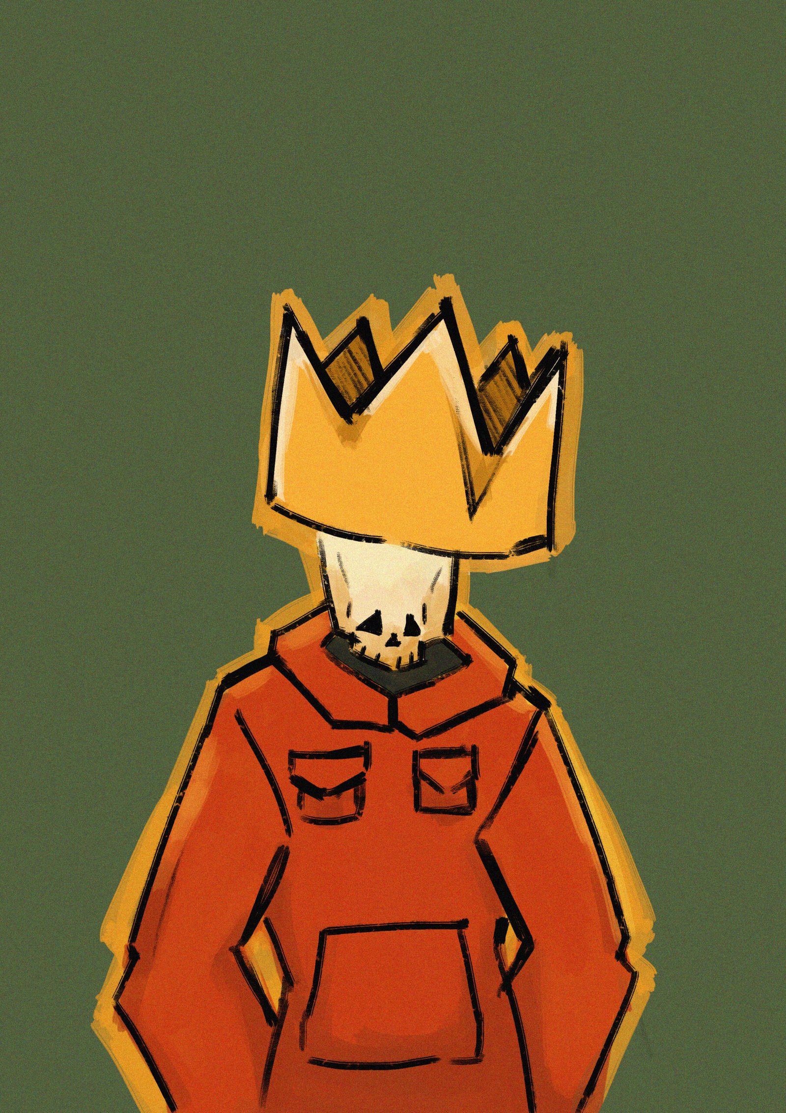 Eskeleto: La muerte siempre a sido un concepto que me mueve y me gusta, así que la hice parte de mis personajes dándole un estilo y personalidad despreocupado pero siendo el rey, aun así este dibujo tiene como referencia una foto de Kendrick Lamar.