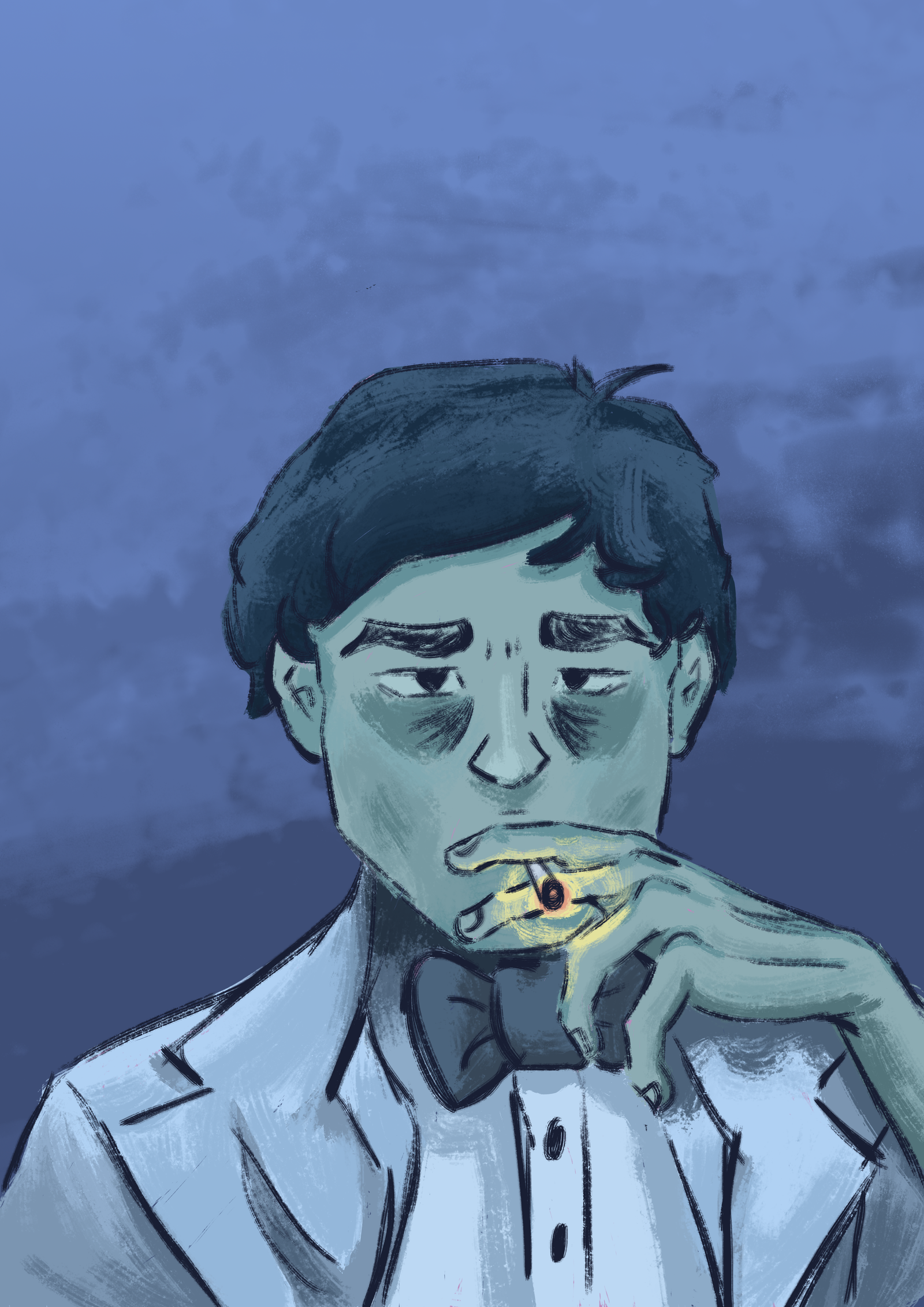 Mi proceso para crear una ilustración suele ser ver algo que me inspire, crear una serie de bocetos en mi scketchbook o simplemente escuchar música buscando inspiración. Teniendo mi boceto o bocetos, procedo a pasarlo a Photoshop para empezar a tirar trazos, siguiendo mi intuición y buscando referencias si así lo necesito, suele seguir una paleta de colores pequeña y trazos finos buscando dar unas sensación o sentimiento a las personas que lo vayan a ver, eso es lo que más me importa crear una experiencia.